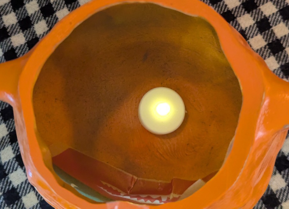 Halloween Vintage inspired Devil Lantern by Evelyn & Lou Vintage. Classic detailed design made from durable 3D printed thermoplastic material that is strong and stores well. Painted and hand finished for an old and worn style. Includes vellum paper face insert and flickering tea light candle. Stands 8" tall.