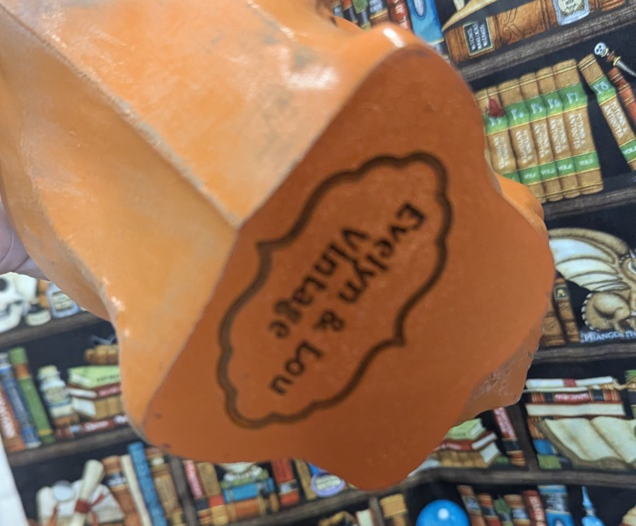 Vintage Halloween inspired Standing Cat by Evelyn Lou Vintage. Classic detailed design made from durable 3D printed thermoplastic material that is strong and stores well. Painted and hand finished for an old and worn style. Includes vellum paper face insert and flickering tea light candle. Stands 8" tall